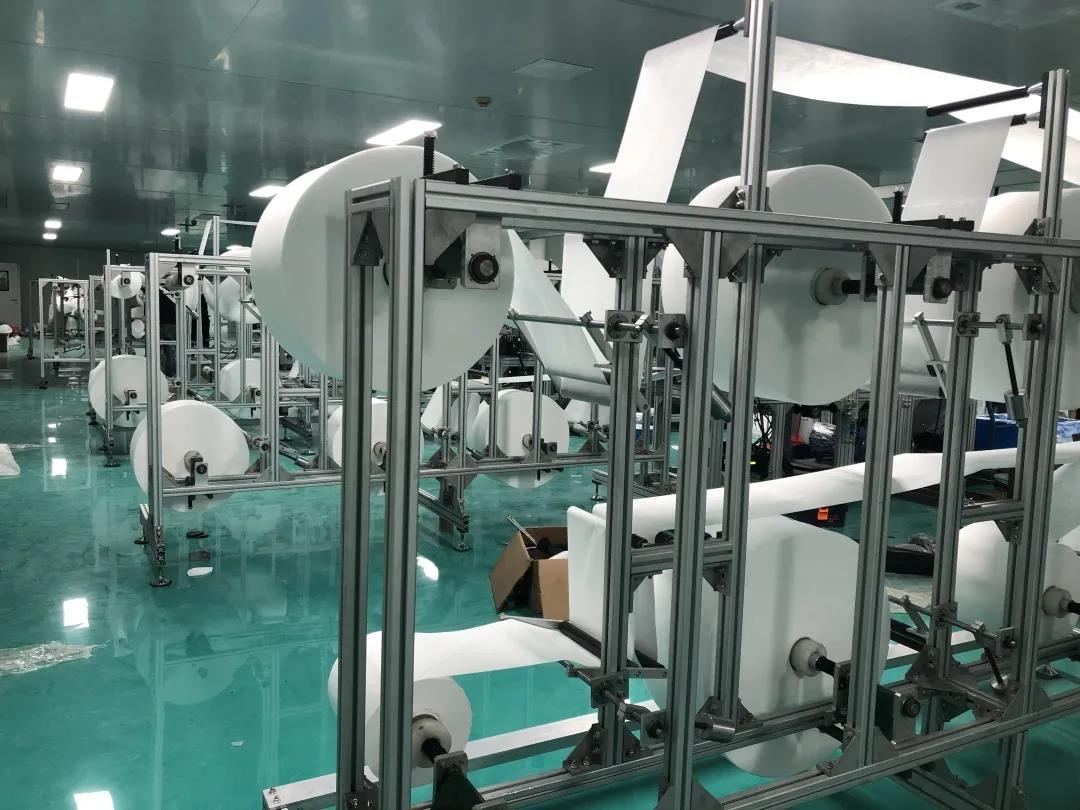 N95口罩机,三枪上了!5月11日上午,龙头股份三枪集团3台生产速度为40片/分钟的半自动N95口罩制片机成功启动运行,另有5台安装好的半自动N95口罩机正在调试中。
